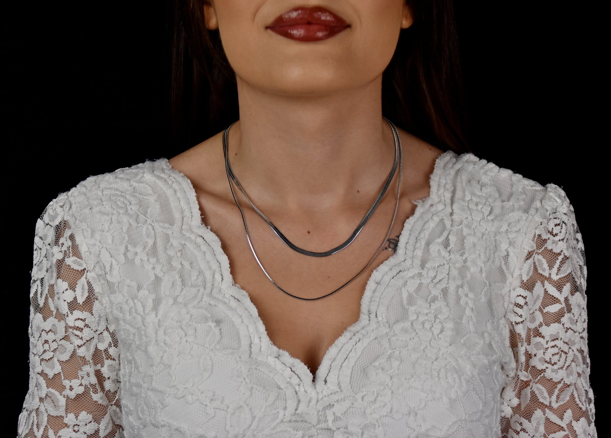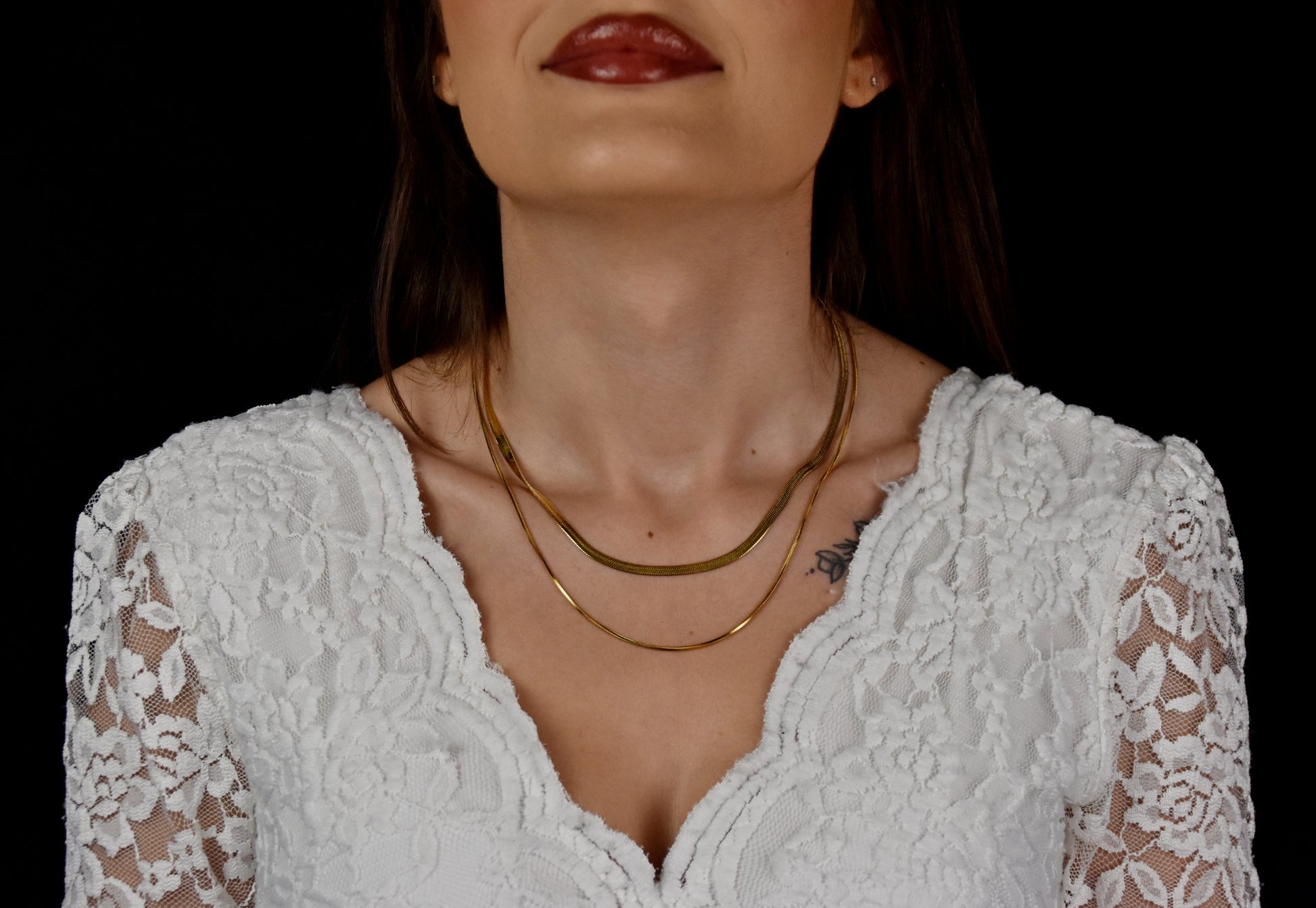 Le collier AURÉNA séduit par son double rang raffiné : une alliance subtile entre finesse et éclat qui épouse la courbe du cou. À la fois moderne et intemporel, il se porte pour toutes les occasions, seul ou associé à d'autres bijoux pour un style affirmé.